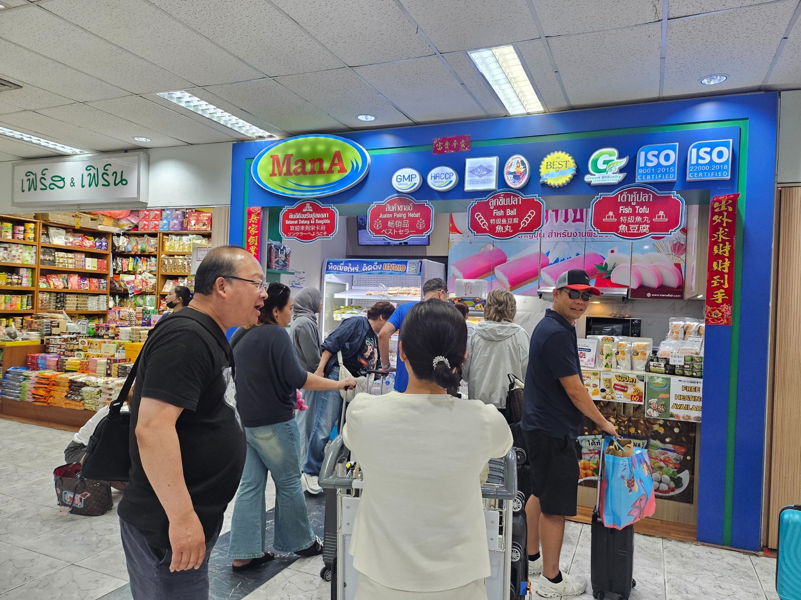 ขอขอบพระคุณทีมงาน สภาอุตสาหกรรมแห่งประเทศไทย นำทีมโดย คุณเกรียงไกร เธียรนุกุล ที่แวะมาซื้อสินค้าของบริษัท แมน เอ ที่ ️สนามบินหาดใหญ่ ด้วยนะครับ เพื่อนๆบางท่านที่แวะมาจังหวัดสงขลา หรือมาเที่ยวอำเภอหาดใหญ่ หากซื้อสินค้าแมน เอ จากในเมืองไม่ทัน ที่ ท่าอากาศยานนานาชาติหาดใหญ่ แมน เอ มีหน้าร้านจำหน่ายสินค้า ไว้เป็นทางเลือกเก็บตกซื้อของฝากของจังหวัดสงขลาติดมือกลับบ้านไปได้ ไม่ว่าจะเป็น ลูกชิ้นปลายอดขุนพล ลูกชิ้นปลาไต้ก๋ง สินค้า OTOP ของแมนเอ น้ำหวานตาลโตนด หนังปลาทอดกรอบ หมึกหวานตาลโตนดอาหารรองท้องระหว่างรอขึ้นเครื่อง ถ้าซื้อของกลับแต่กลัวสินค้าละลายหรือ ไม่เย็น ที่ร้านมีบริการห่อ ️ซองเก็บความเย็นฟรี เพื่อนๆสามารถแจ้งน้องหน้าร้านได้เลยนะครับหรือเพื่อนๆสามารถซื้อกล่องโฟมและกระเป๋าผ้าเก็บความเย็นรุ่น Limited เพิ่มเติมได้ครับ มั่นใจได้ว่าของถึงปลายทางยังคงสภาพไว้ดีที่สุดแน่นอนครับ #โรงงานผลิตลูกชิ้นปลา #ที่สุดสงขลา #ลูกชิ้นปลาแมนเอ #ของฝากจังหวัดสงขลา #เต้าหู้ปลาแมนเอ #อาหารทะเลแปรรูป #อาหารสุขภาพ #ปลาทะเลไทย #สนามบินหาดใหญ่ #สภาอุตสาหกรรมแห่งประเทศไทย