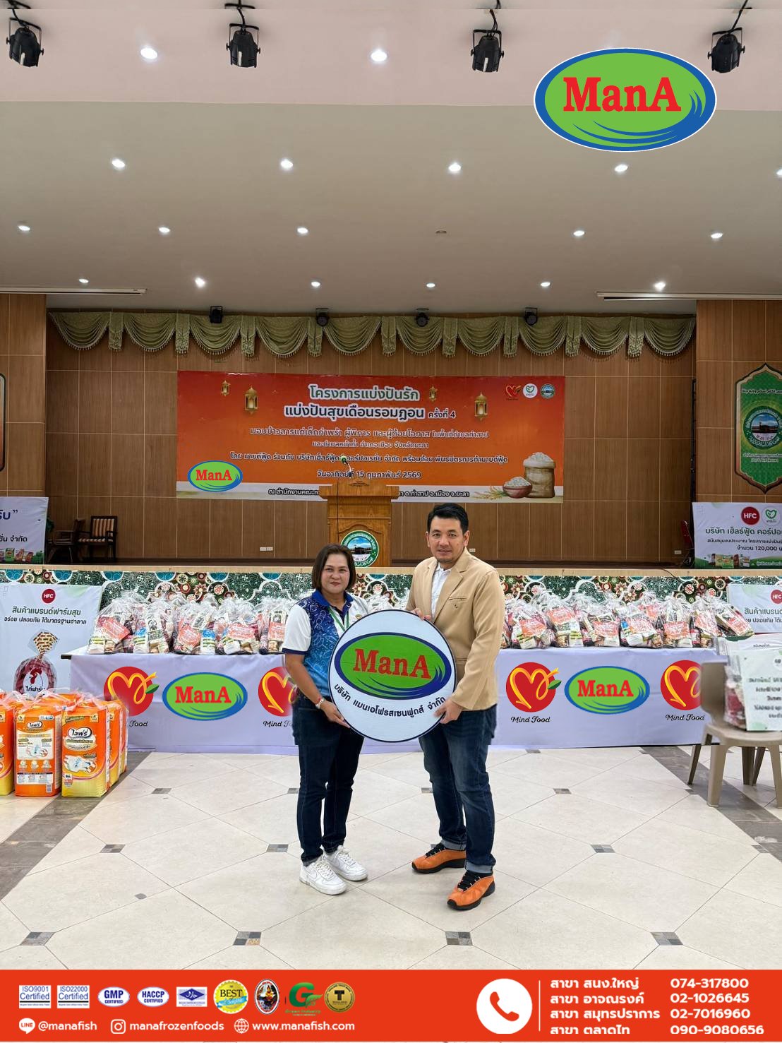 ร่วมแบ่งปันรอยยิ้มในเดือนรอมฎอนอันประเสริฐวันที่ 15 ก.พ. 69 ที่ผ่านมา บริษัท แมนเอโฟรสเซนฟูดส์ จำกัด ร่วมกับ บริษัท มายด์ฟู้ด คอร์ปอเรชั่น จำกัด ได้จัดกิจกรรมแจกข้าวสารอาหารแห้ง ในโครงการแบ่งปันรัก แบ่งปันสุขเดือนรอมฎอน ครั้งที่ ณ สำนักงานคณะกรรมการอิสลามจังหวัดยะลา เพื่อสนับสนุนและส่งต่อกำลังใจให้พี่น้องในพื้นที่ในช่วงเดือนรอมฎอนอันประเสริฐเดือนแห่งการให้ การแบ่งปัน และความเมตตาเราหวังเป็นอย่างยิ่งว่าความตั้งใจเล็ก ๆ ของพวกเราจะช่วยเติมเต็มรอยยิ้ม และสร้างพลังใจให้ทุกครอบครัวขอให้เดือนรอมฎอนปีนี้ นำพาความสุข ความสงบ และความเจริญมาสู่ทุกท่าน#โครงการแบ่งปันรักแบ่งปันสุข #รอมฎอนครั้งที่4 #แมนเอ #ลูกชิ้นปลาแมนเอ #มายด์ฟู้ดคอร์ปอเรชั่น #ยะลา #RamadanKareem #ManACSR #แมนเอCSR #กิจกรรมCSR